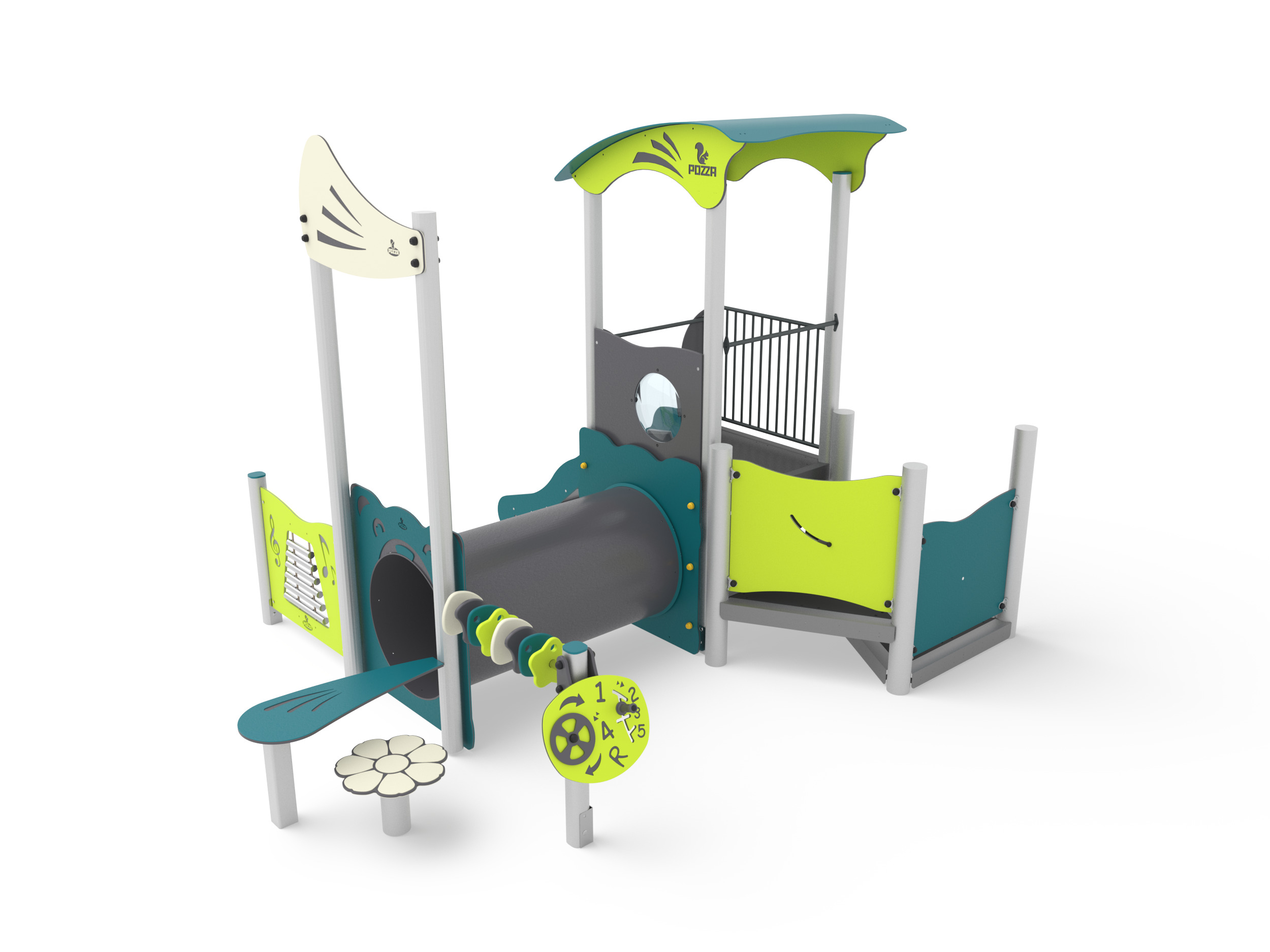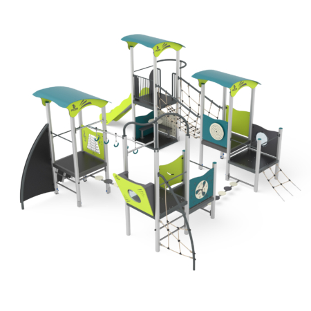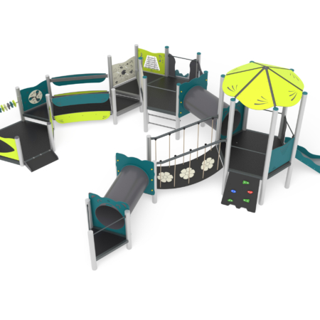 - NR 1 NG Pannello attivita geometrie - Gioco attivita geometrie realizzato in corda di acciaio rivestita e fissata alla struttura portante mediante bulloneria passante a scomparsa, polietilene HDPE bicolore inciso con percorso attivita e figure. Tutta la bulloneria e gli elementi di fissaggio in acciaio inox