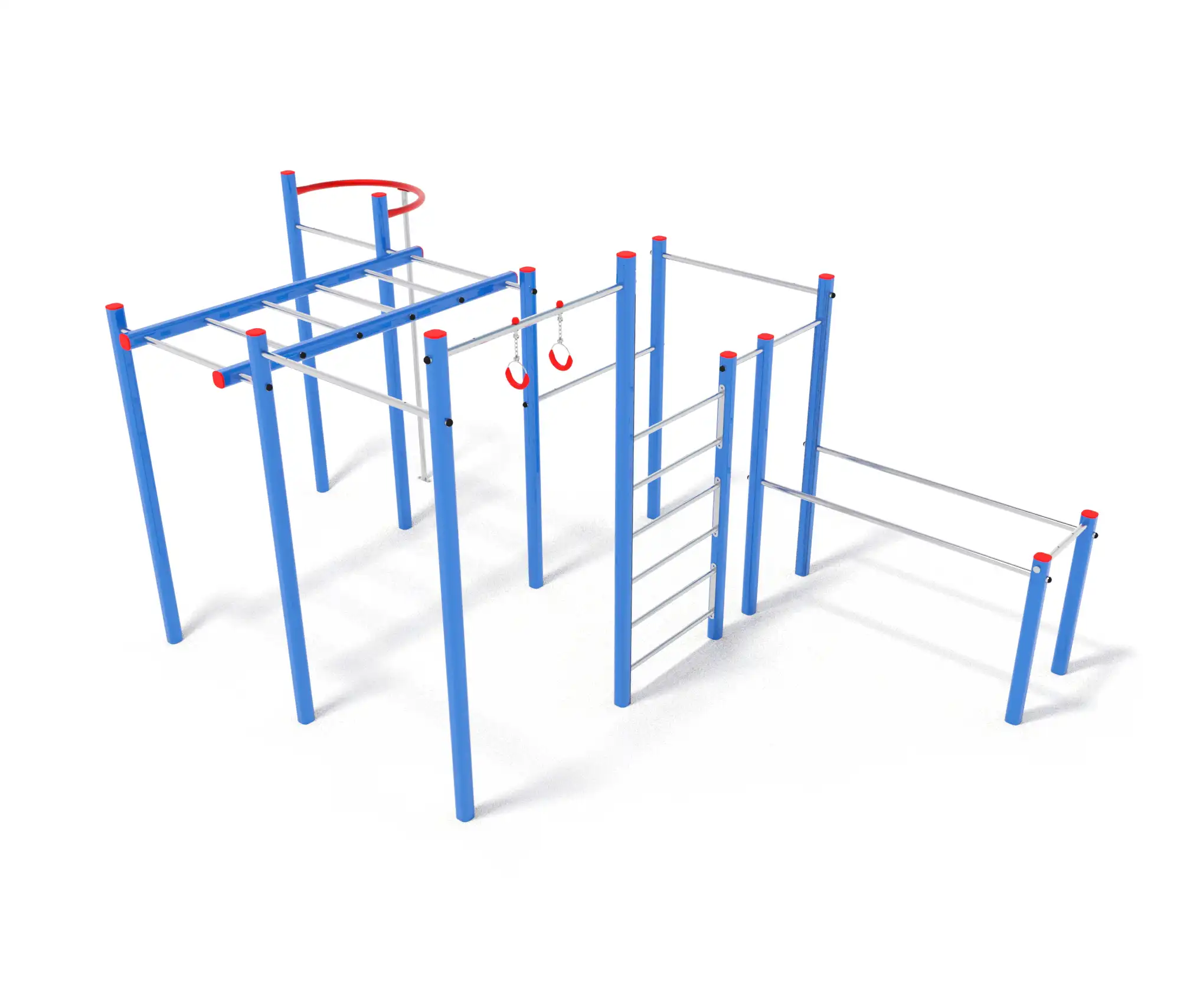 HERCULES - palestra calisthenics / CH5 / Prodotto da azienda certificata ISO 9001, ISO 14001, PEFC e FSC. Realizzato in alluminio EN AV6060 profilo speciale mm 90x90 con spigoli arrotondati raggio mm 32 con anime interne di rinforzo. Spessore minimo mm 2,7. Tutta la bulloneria in acciaio inox.