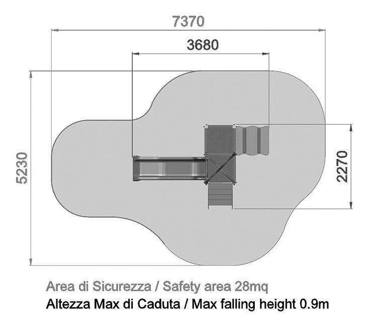 - NR 1 Scivolo Easy h 90 cm - Scivolo Easy h90cm realizzato con scivolata in acciaio inox di larghezza 45cm e pannelli laterali in polietilene HDPE composto per il 51% di plastica riciclata pannelli laterali di protezione in polietilene e barra reggispinta di lunghezza 66 cm realizzata in acciaio verniciato. Tutta la bulloneria e gli elementi di fissaggio in acciaio inox