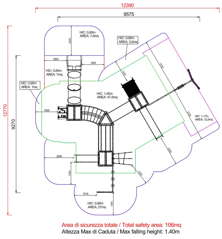 ISCHIA CON ALTALENA E PALESTRA - FANTASY - STRUTTURA MULTILIVELLO, TORRI, SCIVOLI, RISALITE E PALESTRA / +AF604AP_ALU