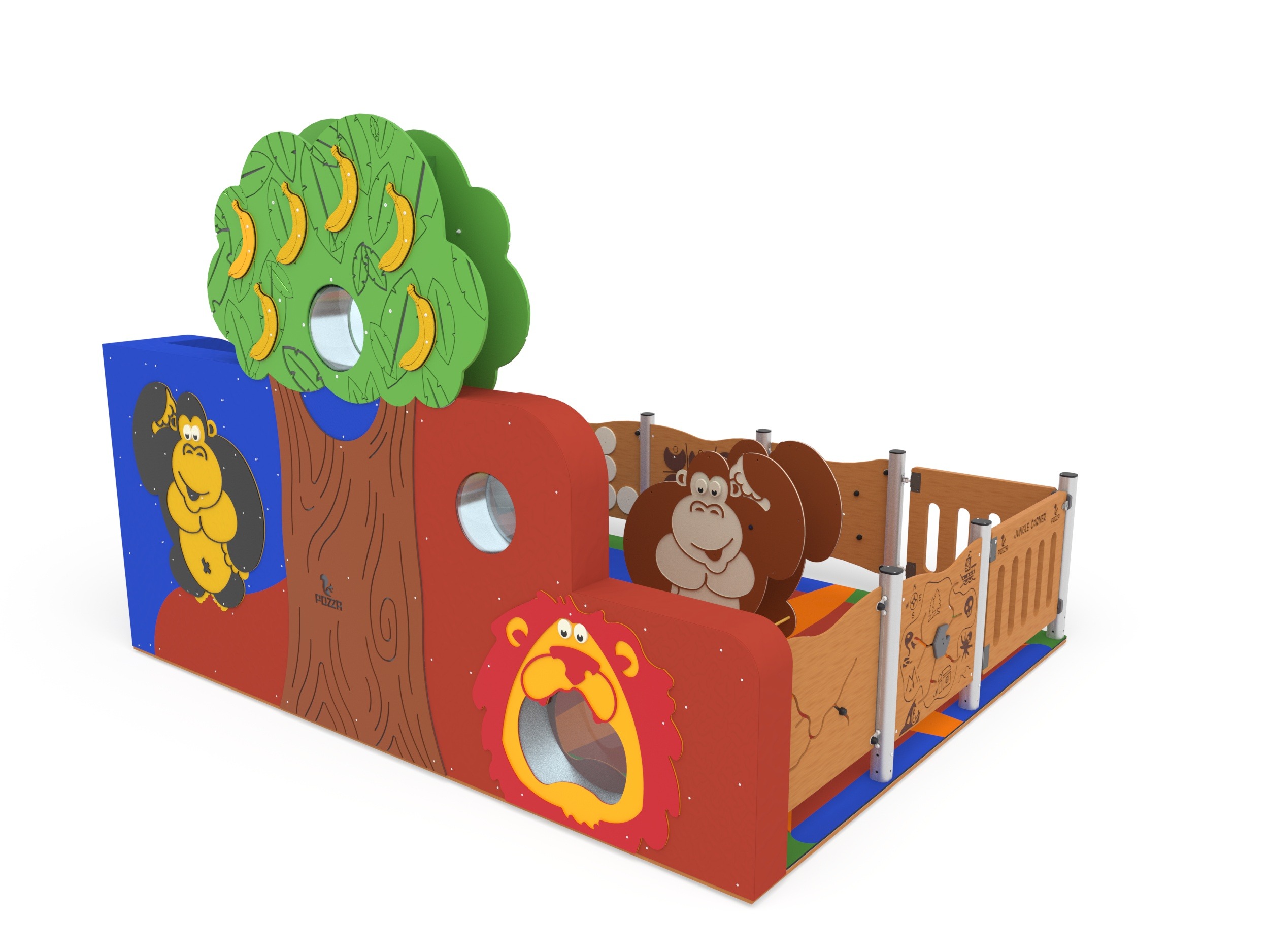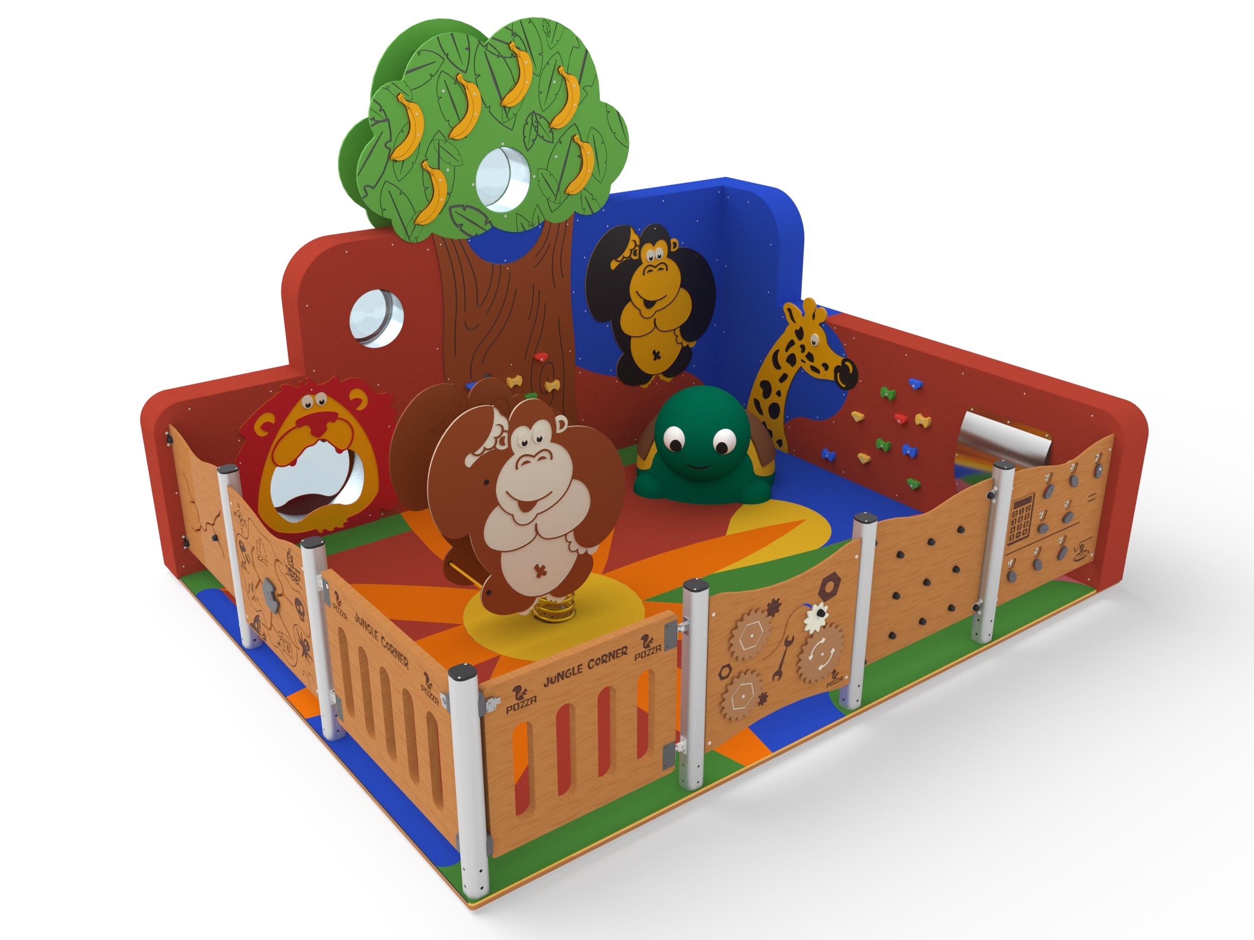 JUNGLE CORNER - gioco villaggio inclusivo bambini / V0300.GT-01 / Prodotto da azienda certificata ISO 9001, ISO 14001, PEFC e FSC. Realizzato polietilene HDPE resistente ai raggi UV. Tutta la bulloneria in acciaio inox.
