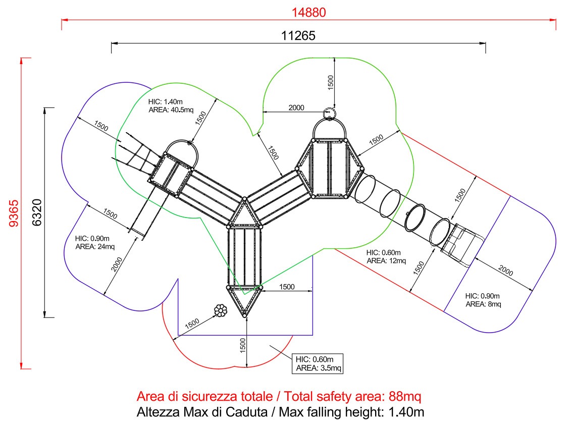 - NR 1 NG Torre h90 con tetto Fantasy - Torre altezza 90cm Realizzata con nr 4 montanti in alluminio EN EV6060 anodizzato con profilo speciale 90mm x 90mm con spigoli arrotondati raggio 32mm e anime interne di rinforzo spessore minimo 2,7 mm tutta la bulloneria e fissaggi in acciaio inox, 1 pianale dimensione 1040mm x 1040mm realizzato con profili in acciaio zincato e verniciato e pedana in plastica riciclata al 95% seconda vita spessore 25mm. Tetto realizzato con due falde in polietilene HDPE spessore 20mm e un pannello curvo in polietilene