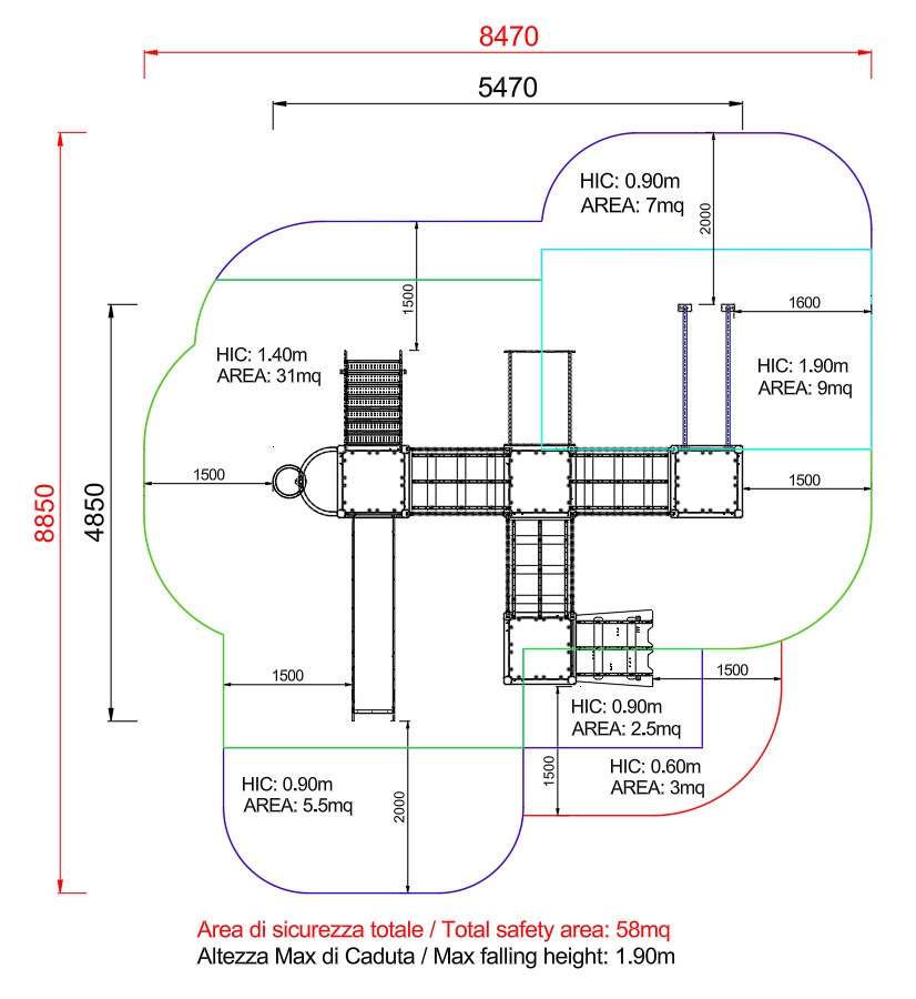 MANGO CON SCALA - EASY - STRUTTURA INCLUSIVA, 4 TORRI MULTILIVELLO, SCIVOLO E RISALITE ACCESSIBILI / +AE103.S.POLY150_ALU