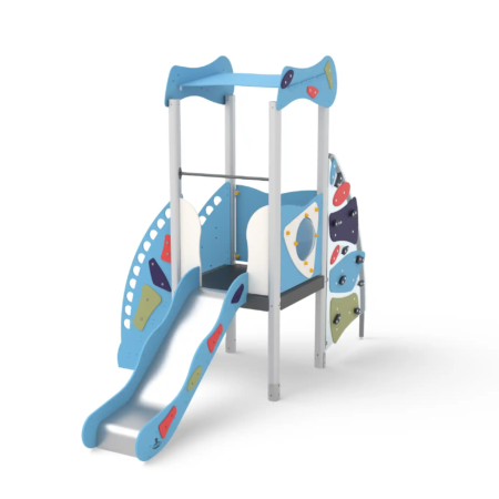 MERLINO BABY CON SEDUTA COLORI - struttura doppia torre multilivello / AF102B.GT-06 COLORI / Prodotto da azienda certificata ISO 9001, ISO 14001, PEFC e FSC. Realizzato in alluminio EN AV6060 profilo speciale mm 90x90 con spigoli arrotondati raggio mm 32 con anime interne di rinforzo. Spessore minimo mm 2,7. Tutta la bulloneria in acciaio inox.
