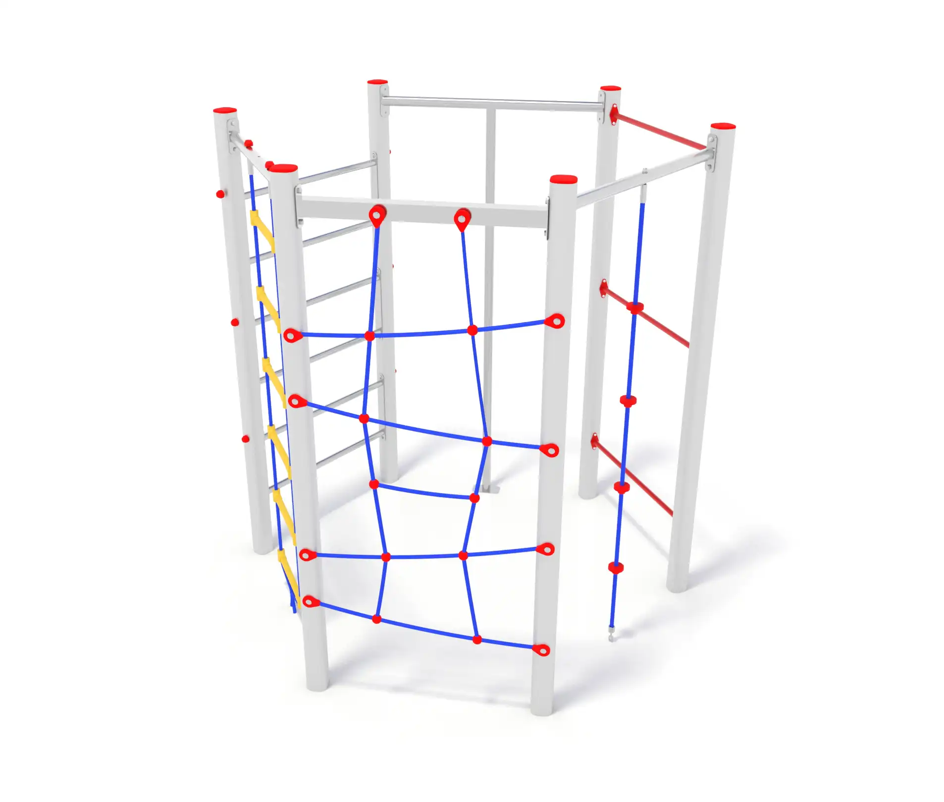 PALESTRA ESAGONALE - struttura arrampicata per bambini / C0100 / Prodotto da azienda certificata ISO 9001, ISO 14001, PEFC e FSC. Realizzato in legno, su richiesta conforme ai criteri CAM. Tutta la bulloneria in acciaio inox.