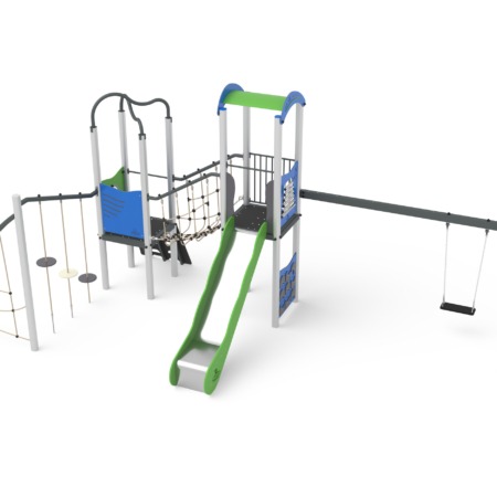 PESCA BABY CON 2 SCIVOLI - EASY - STRUTTURA INCLUSIVA, TORRI MULTILIVELLO CON SCIVOLI E RISALITE ACCESSIBILI / +AE102B.POLY100_ALU