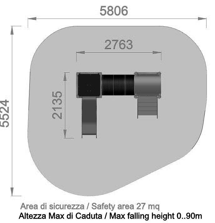 - NR 1 Scivolo h 90 cm - Scivolo h90cm realizzato con scivolata in acciaio inox di larghezza 45cm e pannelli laterali in polietilene HDPE, pannelli laterali di protezione in polietilene e barra reggispinta di lunghezza 86 cm realizzata in acciaio verniciato. Tutta la bulloneria e gli elementi di fissaggio in acciaio inox