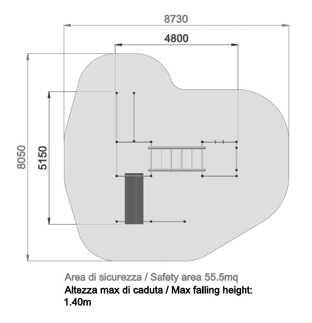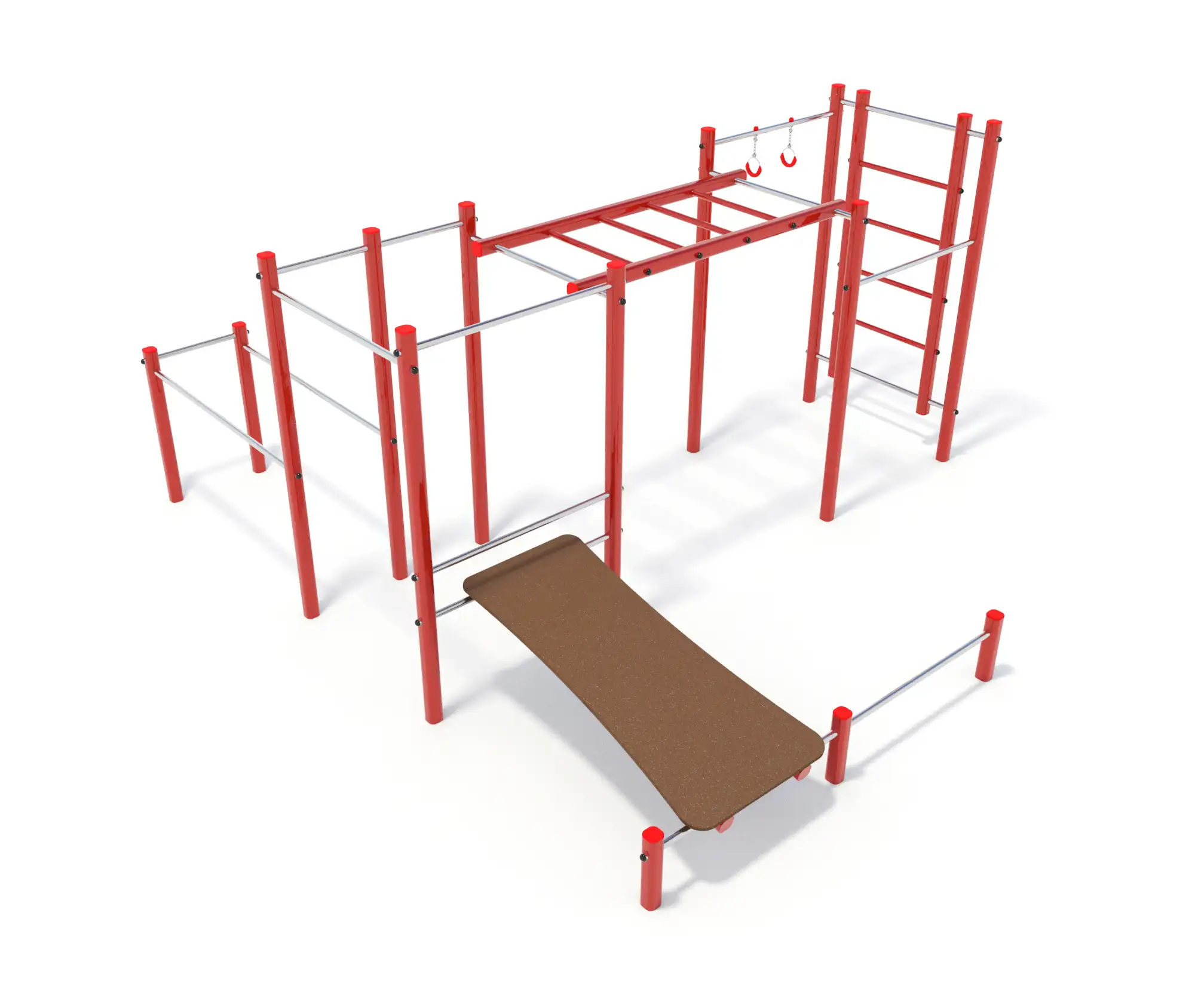 POSEIDON - palestra calisthenics / CH1 / Prodotto da azienda certificata ISO 9001, ISO 14001, PEFC e FSC. Realizzato in alluminio EN AV6060 profilo speciale mm 90x90 con spigoli arrotondati raggio mm 32 con anime interne di rinforzo. Spessore minimo mm 2,7. Tutta la bulloneria in acciaio inox.