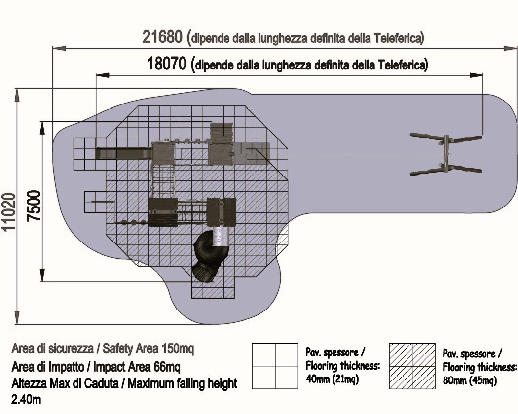 - NR 1 Teleferica Primitiv - Teleferica realizzata in castagno naturale delle Piccole Dolomiti, con pedana di partenza h90cm con pedana frontale in tavole di castagno naturale delle Piccole Dolomiti e risalita in rete di corda d'acciaio rivestito in nylon, struttura portante in legno di castagno naturale, carrucola con cavo in acciaio e seggiolino autofrenante. Stazione di arrivo in legno di castagno naturale delle Piccole Dolomiti