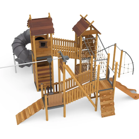 TORRE MINI PRIMITIV - singola torre con scivolo e risalita / AZ150 PRIMITIV / Prodotto da azienda certificata ISO 9001, ISO 14001, PEFC e FSC. Realizzato in legno di castagno naturale delle Piccole Dolomiti a chilometro 0. Tutta la bulloneria in acciaio inox.