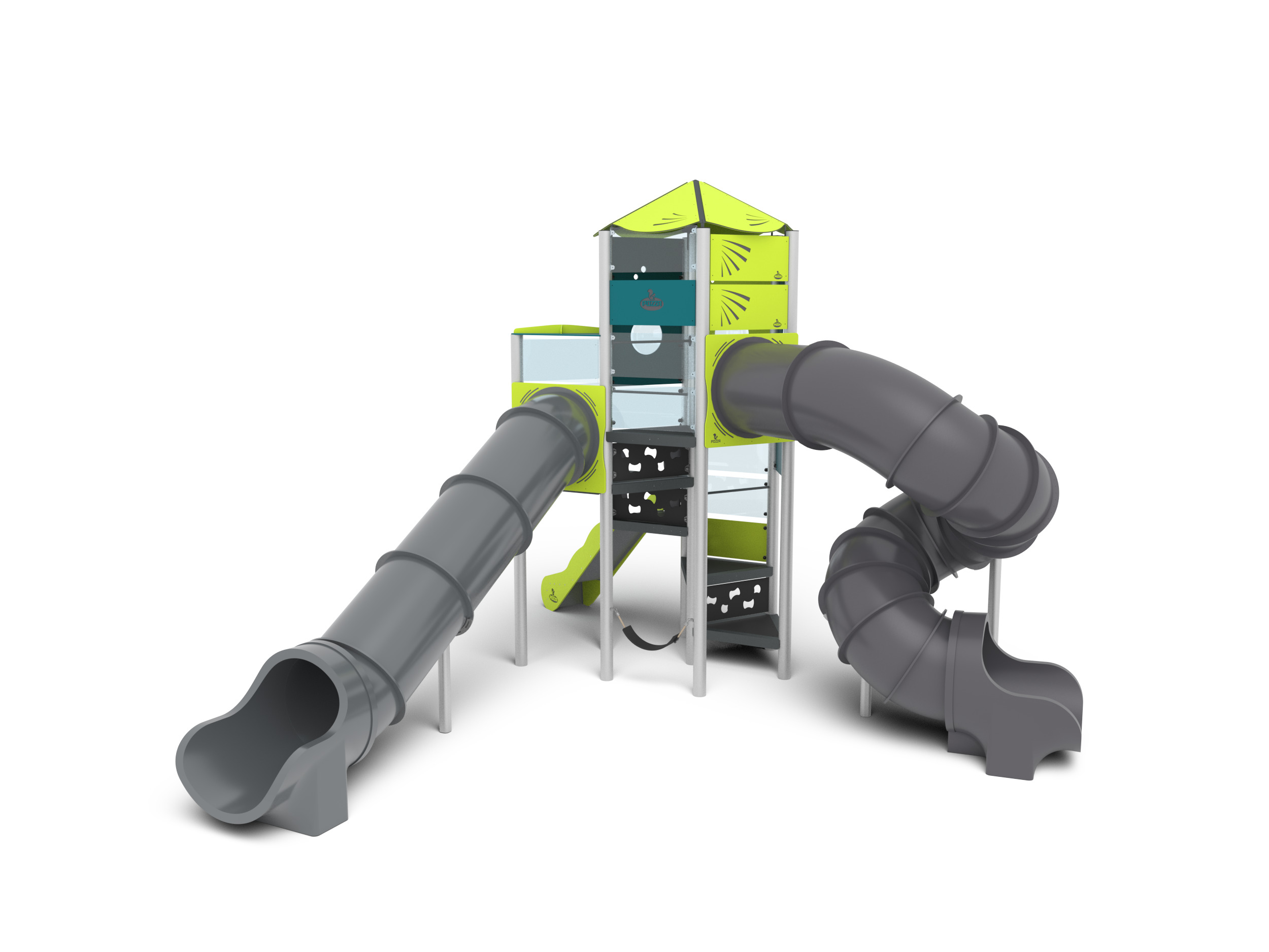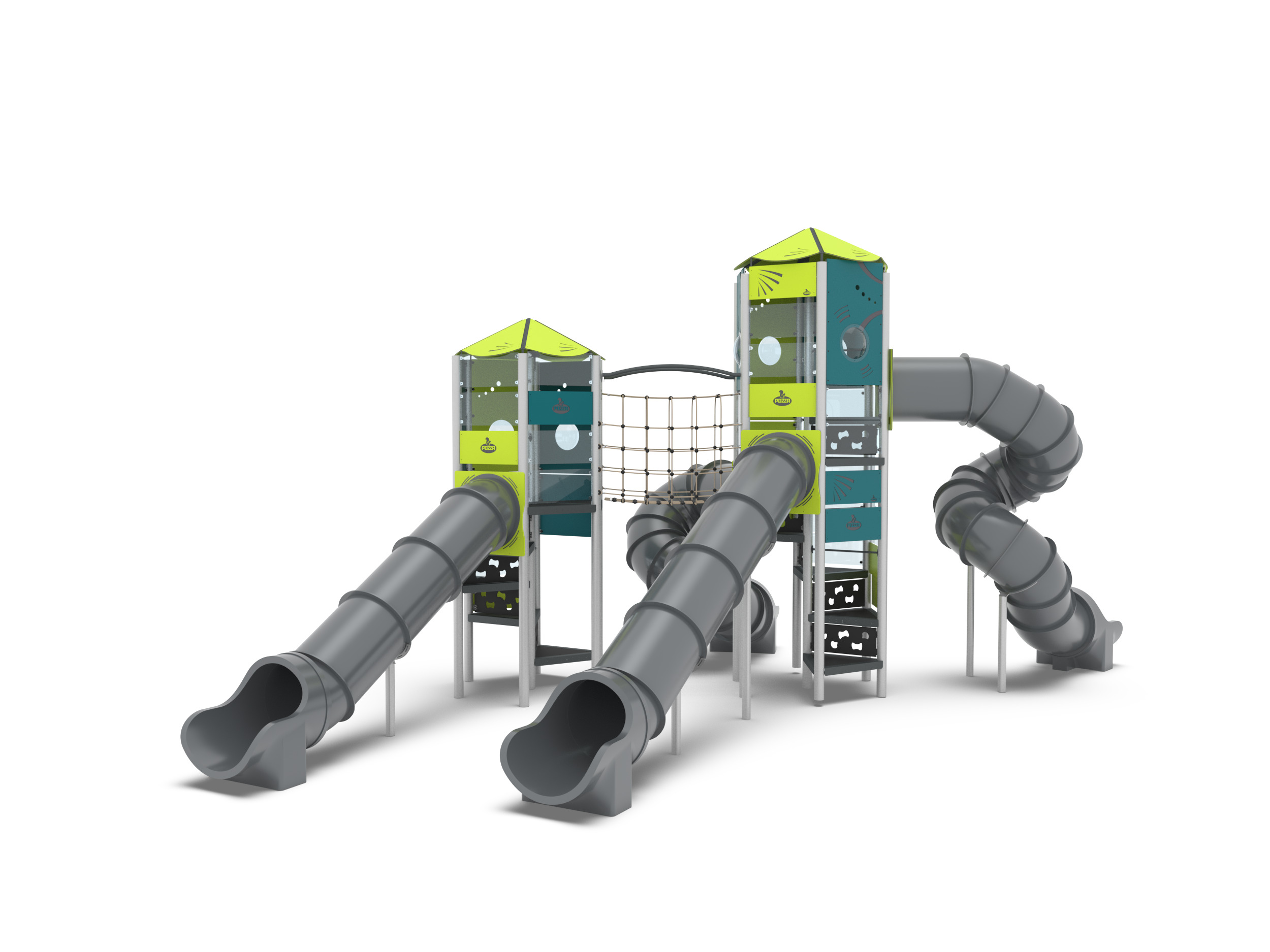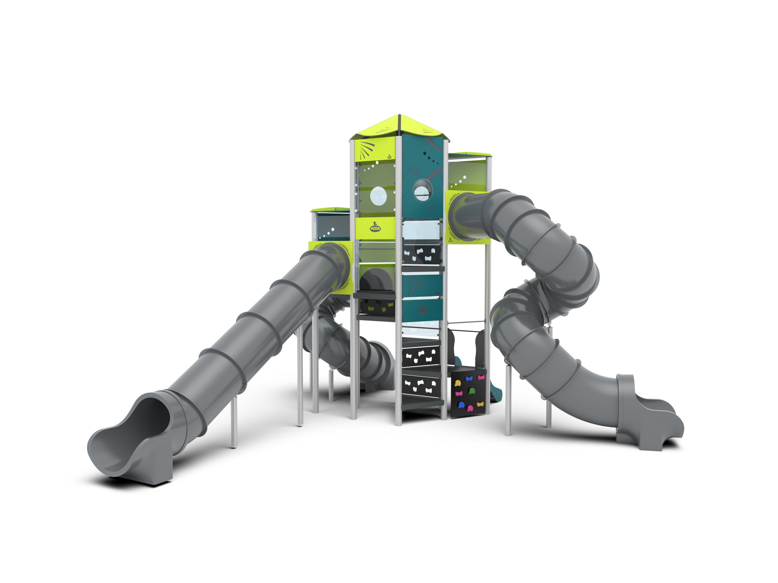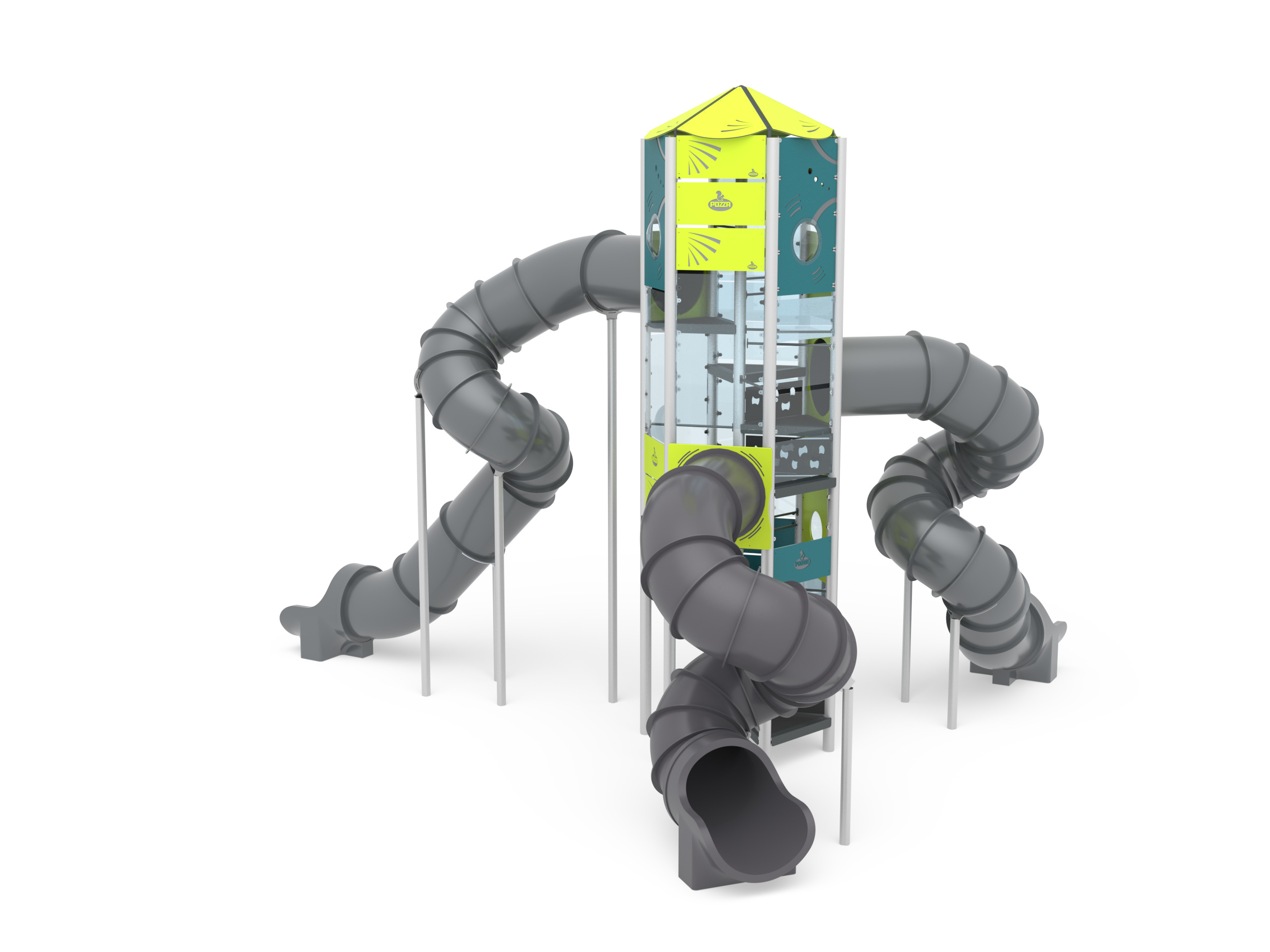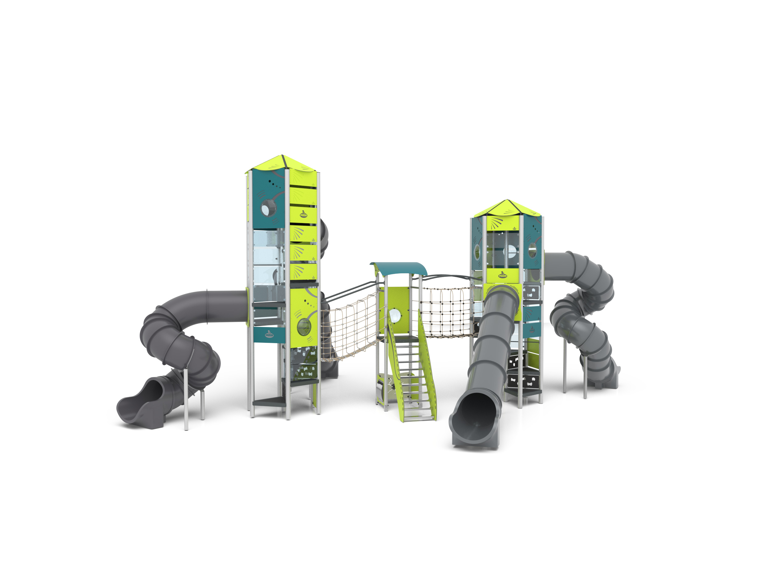 Il gioco che sale in alto. Le torri Babele trasformano il gioco all’aperto in un’avventura unica, combinando altezza, adrenalina e sicurezza. Progettate con grande attenzione e disponibili in versioni Fantasy, Colori, Leaves e Medieval, offrono percorsi dinamici che stimolano curiosità e voglia di sfida. Gli scivoli, posti su diversi livelli, permettono di scegliere ogni volta un’esperienza nuova. Il perimetro protetto riduce il rischio di cadute, mentre le ampie aperture favoriscono luce naturale, percezione dello spazio e panorami spettacolari. Il design accattivante unisce estetica e funzionalità, creando un’attrazione scenografica e sicura, ideale per parchi e aree gioco che desiderano stupire bambini e famiglie.