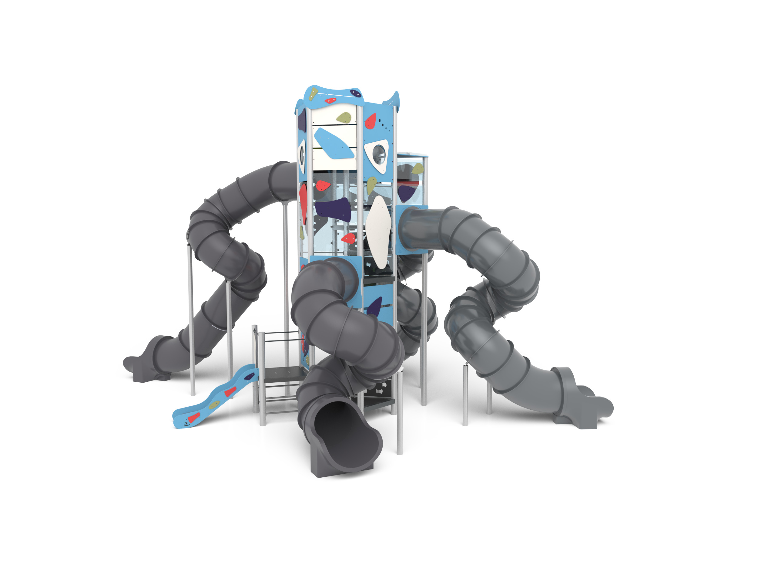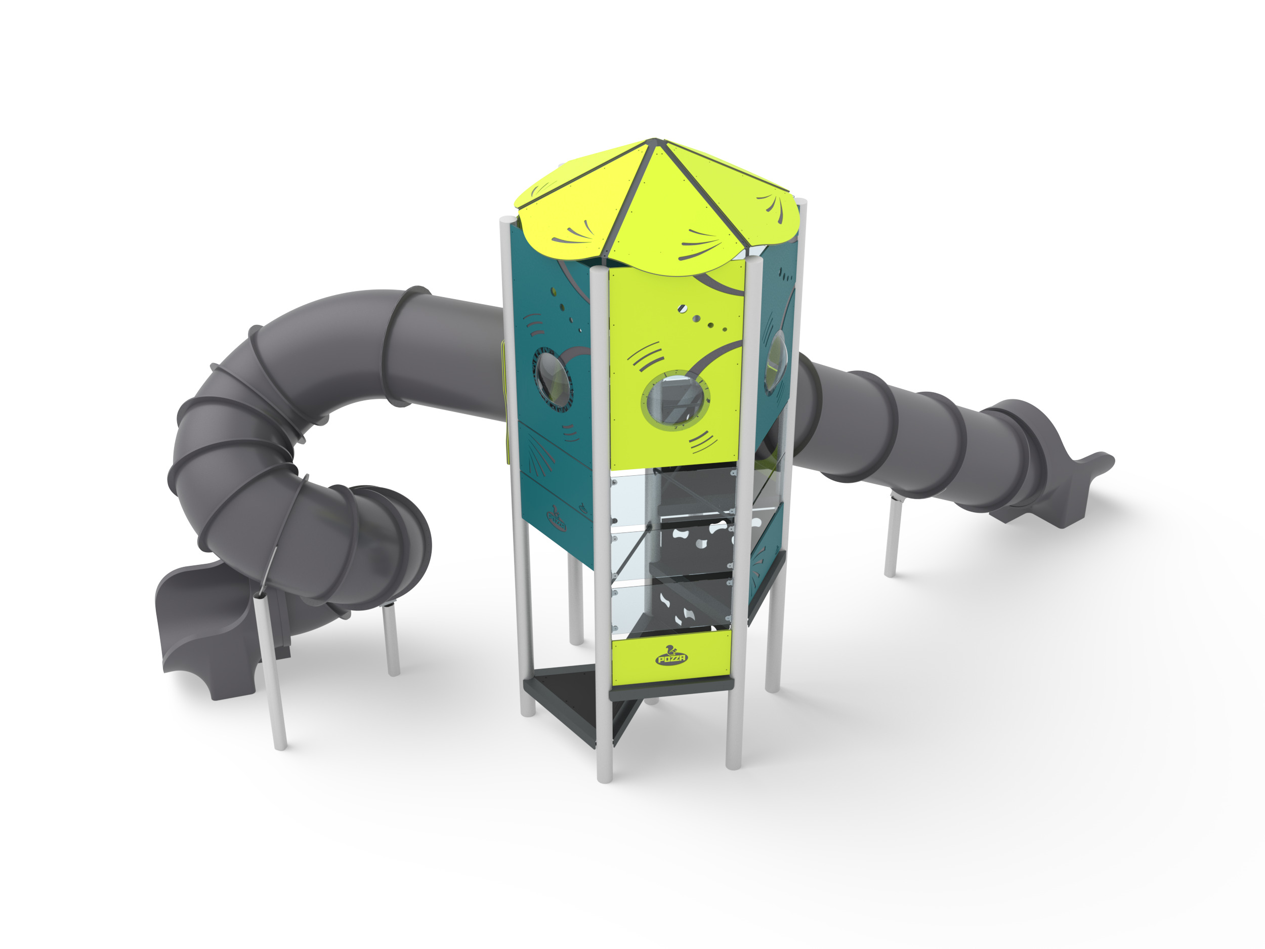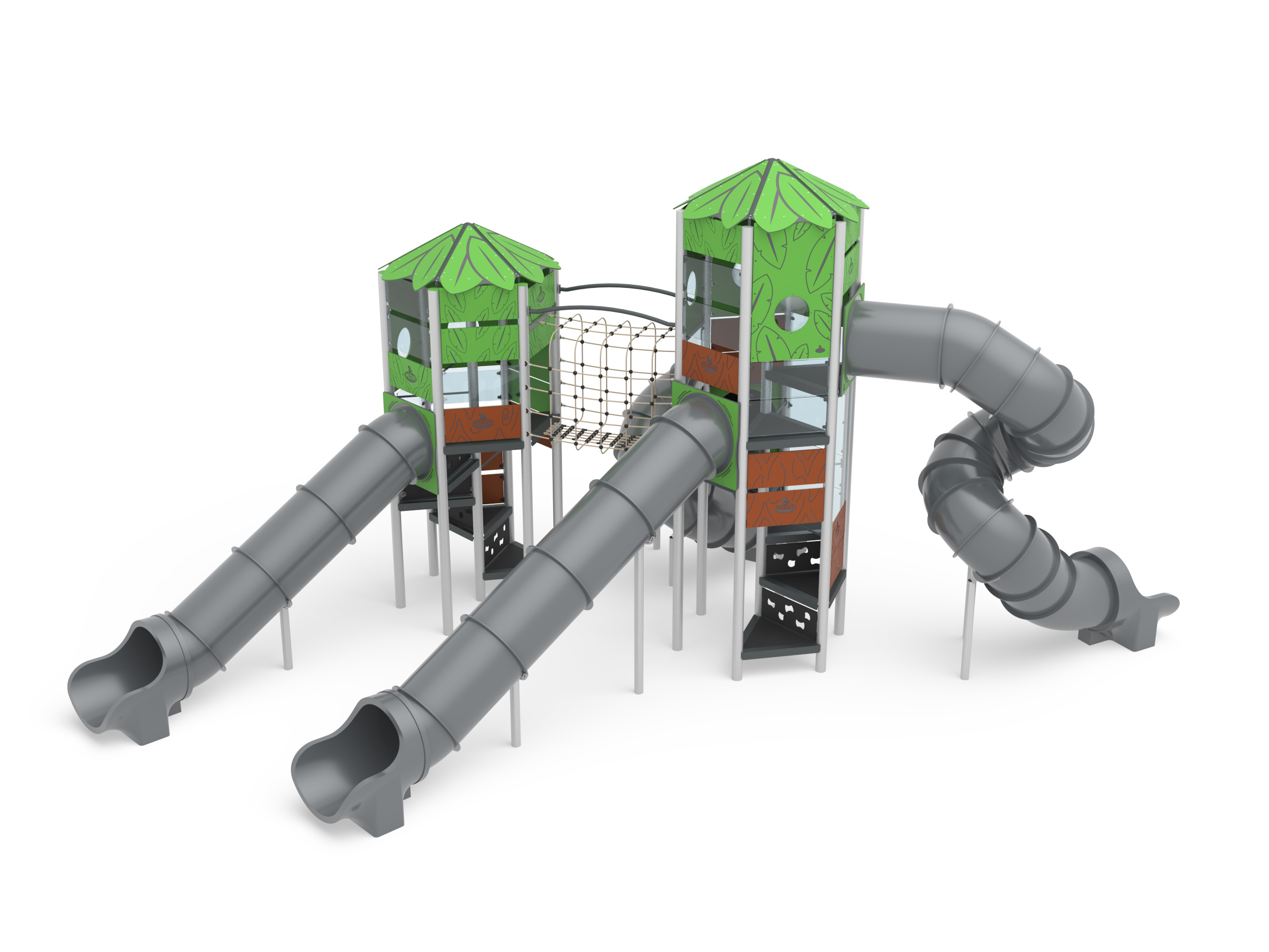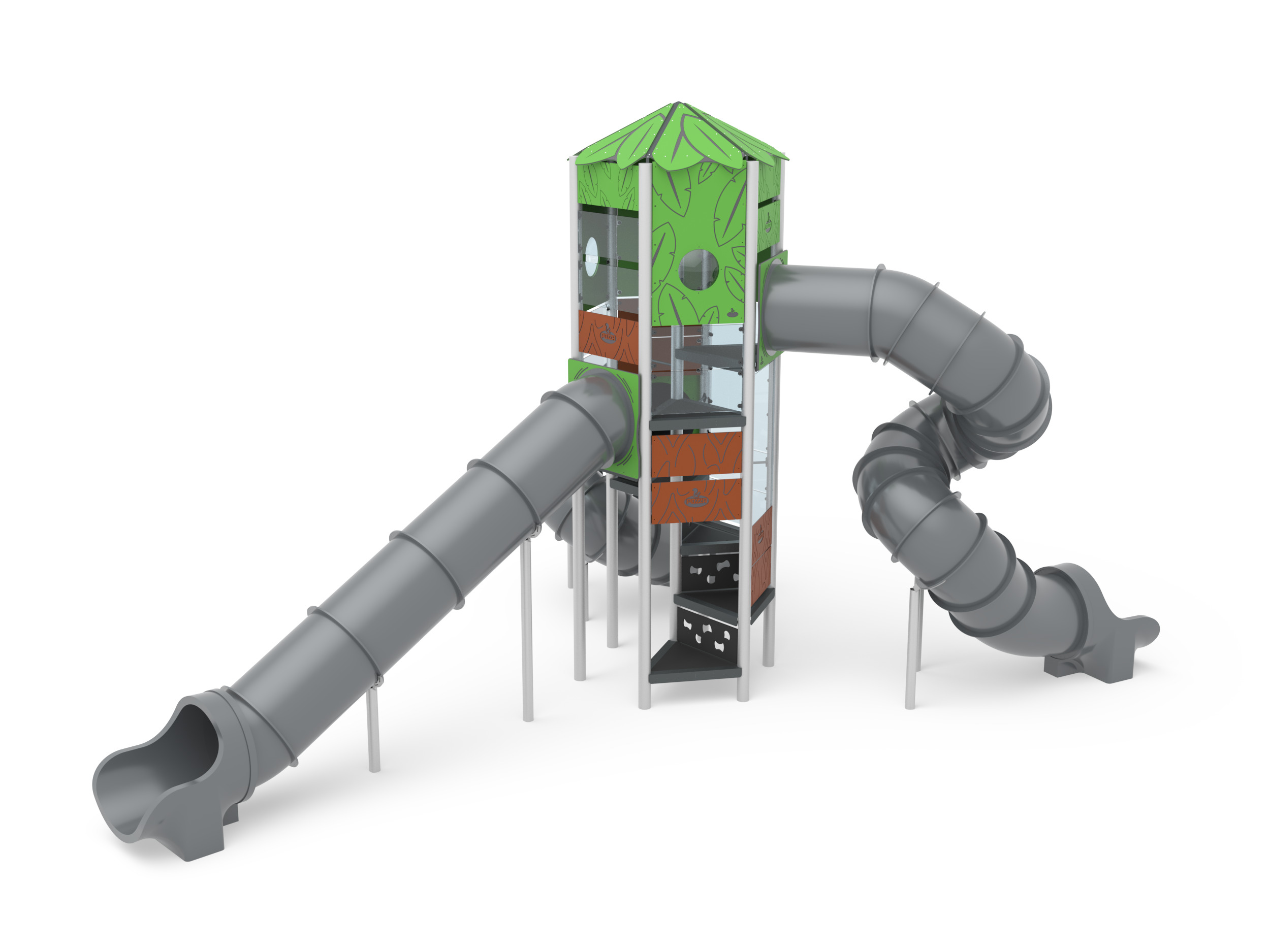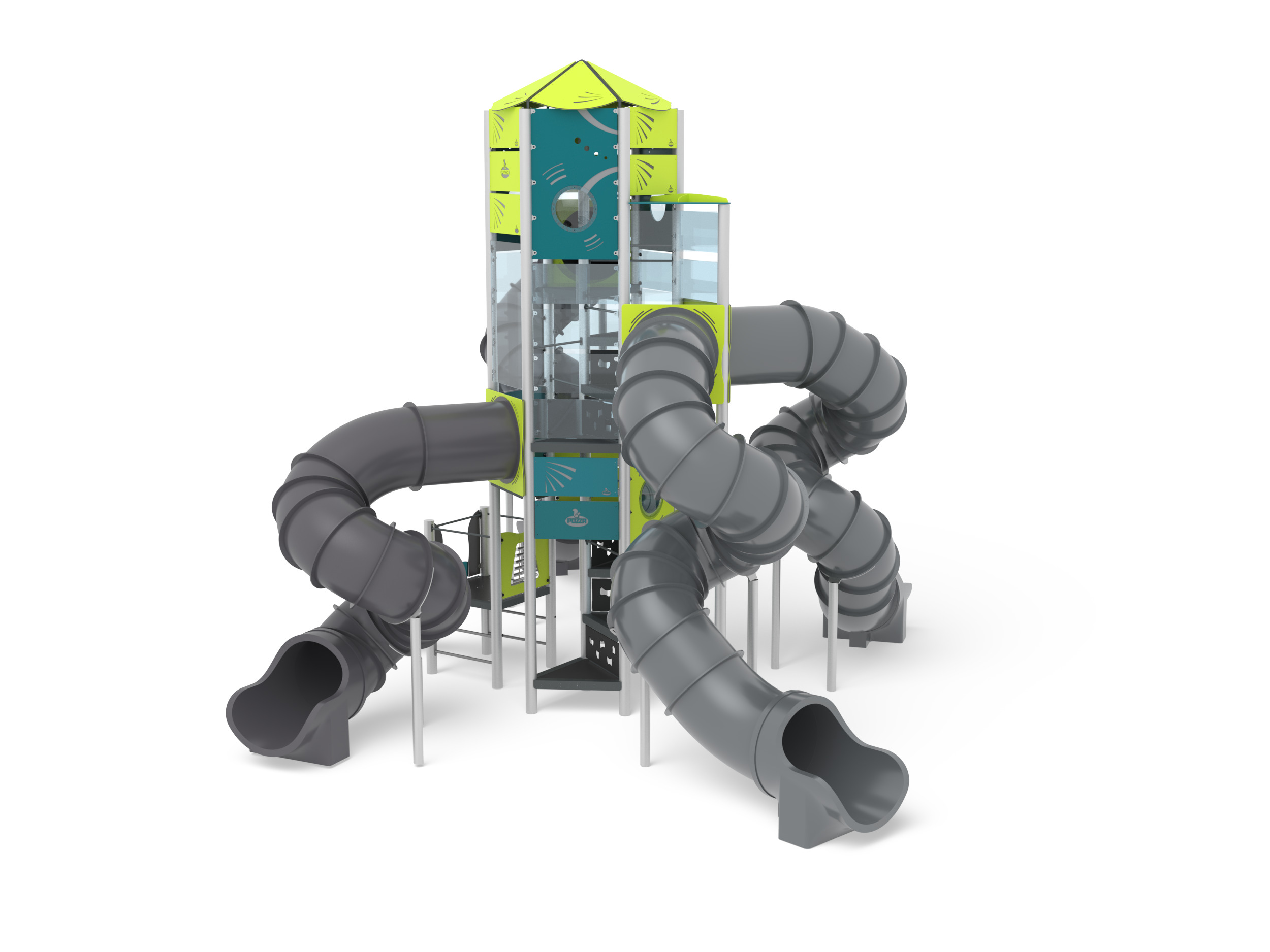 Il gioco che sale in alto. Le torri Babele trasformano il gioco all’aperto in un’avventura unica, combinando altezza, adrenalina e sicurezza. Progettate con grande attenzione e disponibili in versioni Fantasy, Colori, Leaves e Medieval, offrono percorsi dinamici che stimolano curiosità e voglia di sfida. Gli scivoli, posti su diversi livelli, permettono di scegliere ogni volta un’esperienza nuova. Il perimetro protetto riduce il rischio di cadute, mentre le ampie aperture favoriscono luce naturale, percezione dello spazio e panorami spettacolari. Il design accattivante unisce estetica e funzionalità, creando un’attrazione scenografica e sicura, ideale per parchi e aree gioco che desiderano stupire bambini e famiglie.